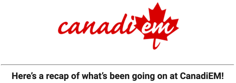 We have continued a biweekly newsletter to update subscribers on the best content at CanadiEM, delivered straight to your inbox! We are now up to almost 1000 subscribers–if you aren’t already subscribed, sign up here