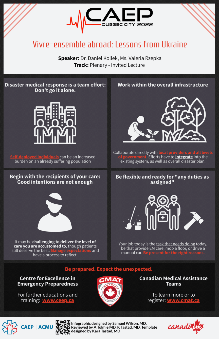Today’s Plenary featured Daniel Kollek and Valerie Rzepka with “Vivre-esemble abroad: Lessons from Ukraine”. In this amazing plenary, they broke down their top tips on how to provide efficient care in a disaster medical response.
